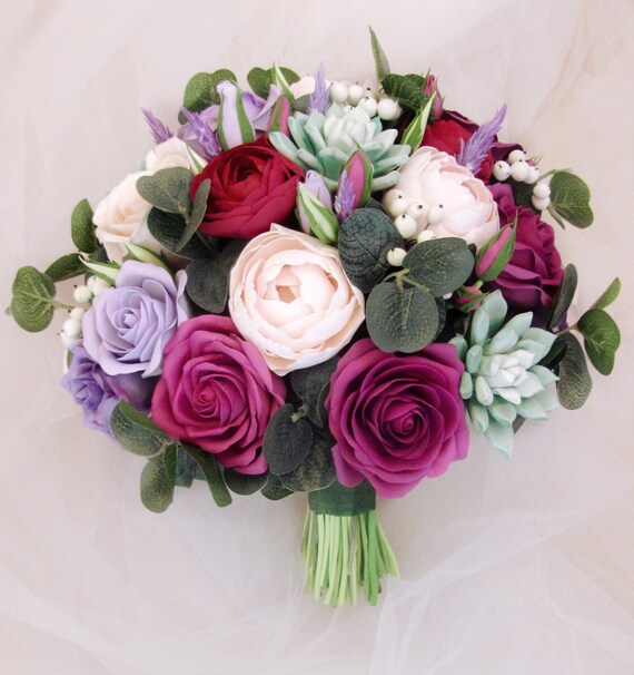 Handgemachte Brautstrauss Lila Lila Rosen Marsala Etsy De